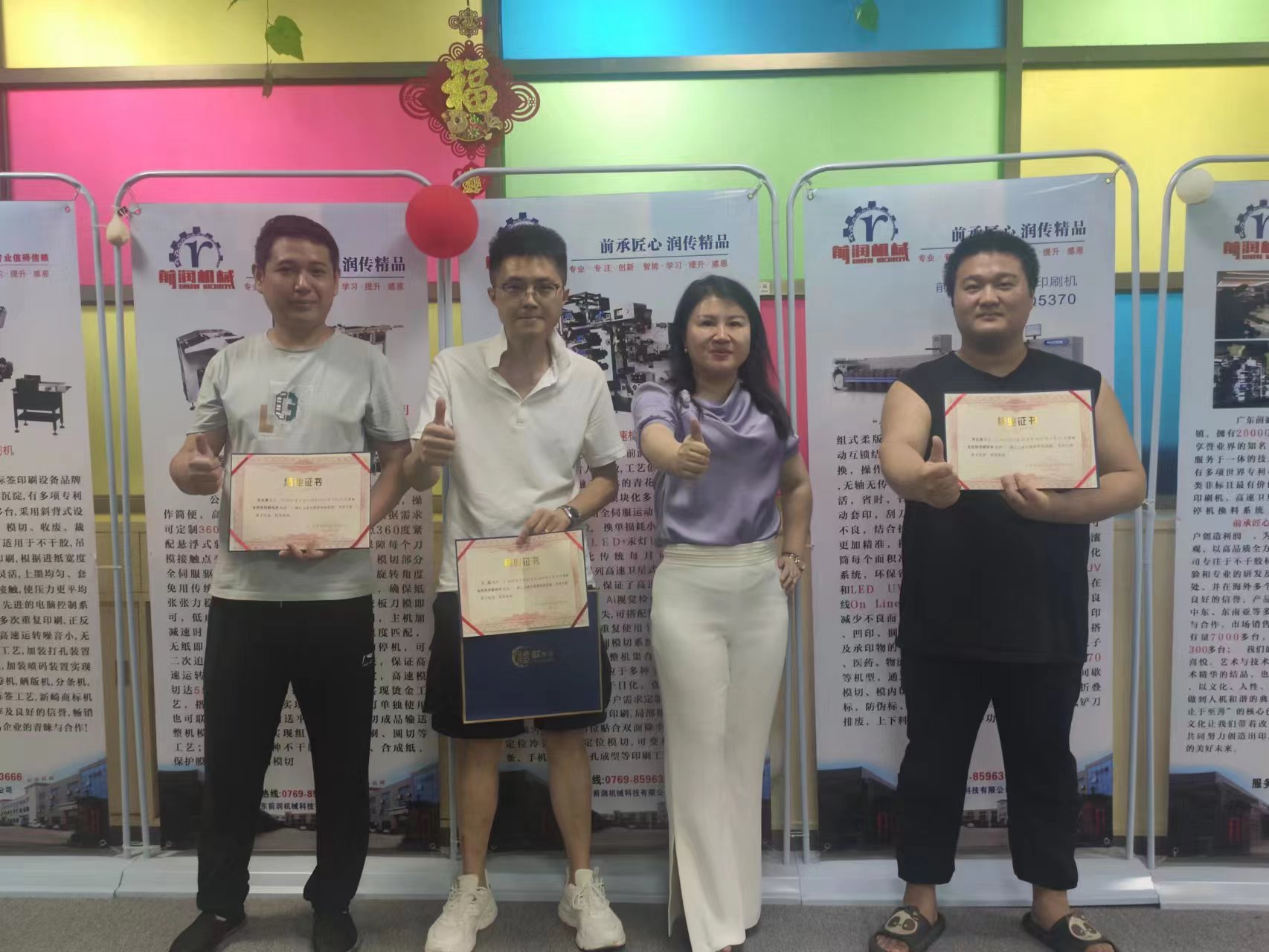 6月1日丁總為結(jié)業(yè)學(xué)員頒發(fā)結(jié)業(yè)證書,并對企業(yè)文化進行宣講,致力于企業(yè)更好的管理,希望大家同心同德,創(chuàng)前沿,潤無聲,用平凡的雙手,創(chuàng)造不凡的業(yè)績。為了企業(yè)的發(fā)展壯大,自律、自省、自警,了解企業(yè),遵守企業(yè)規(guī)定。廣東前潤機械科技有限公司是坐落于美麗的東莞大嶺山鎮(zhèn)的一家集研發(fā)、生產(chǎn)、銷售、服務(wù)于一體的國家高新技術(shù)企業(yè)。前承匠心,潤傳精品,為客戶省人提效,工藝創(chuàng)新,是企業(yè)一直沿用的核心價值觀,創(chuàng)前沿,潤無聲,用前沿科技,為客戶創(chuàng)造利潤是企業(yè)堅持不變的理念。前潤機械永遠在前進的路上,不斷的與時俱進,促進公司的可持續(xù)性發(fā)展。努力打造成為標(biāo)簽印刷設(shè)備行業(yè)技術(shù)風(fēng)向標(biāo),爭取標(biāo)簽印刷行業(yè)世界地位;成為智能制造非標(biāo)定制供應(yīng)商,爭取人工智能行業(yè)。