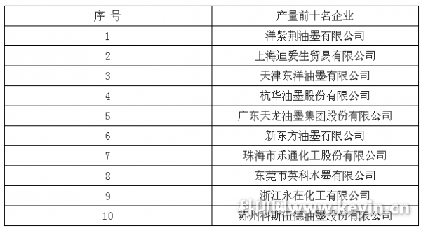 產(chǎn)量前十名企業(yè)