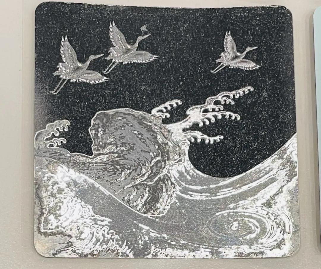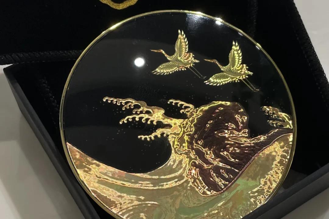 故宮合作的這款標(biāo)簽,使用了定制圖案棱鏡效果的不干膠貓眼原材料,再進(jìn)行定位4色印刷,還原了設(shè)計圖案中仙鶴和海浪的層層細(xì)節(jié)。
