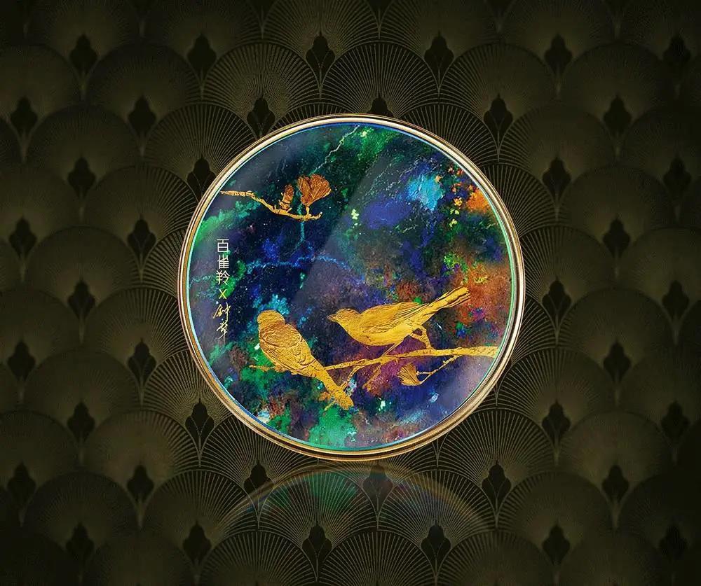 完美日記的粉盒包裝,模擬出金屬質(zhì)感的羽毛。