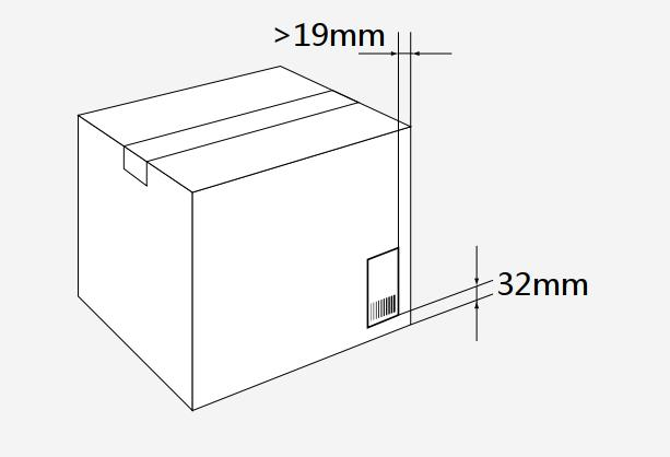 答:一個(gè)物流單元通常需要兩個(gè)標(biāo)簽標(biāo)識(shí),并固定在相鄰的兩個(gè)側(cè)面上。如果實(shí)際情況不允許,每個(gè)物流單元最少要有一個(gè)標(biāo)簽。 2. 問:物流標(biāo)簽位置應(yīng)如何放置?答:高度低于1m的物流單元:對(duì)于高度低于1m的紙板箱與其他的物流單元,標(biāo)簽中SSCC的底邊應(yīng)距離物流單元的底部32mm,標(biāo)簽與物流單元垂直邊線的距離不小于19mm,如下圖所示。